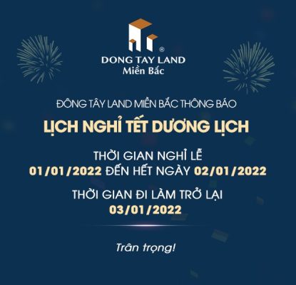 THÔNG BÁO LỊCH NGHỈ TẾT DƯƠNG LỊCH 2022 Đông Tây Land Miền Bắc trân trọng